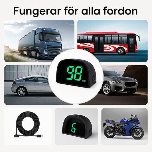 GPS-basert hastighetsmåler med 2,2-tommers TFT LCD-skjerm og Head Up Display-teknologi for enkel overvåking av gjeldende hastighet.